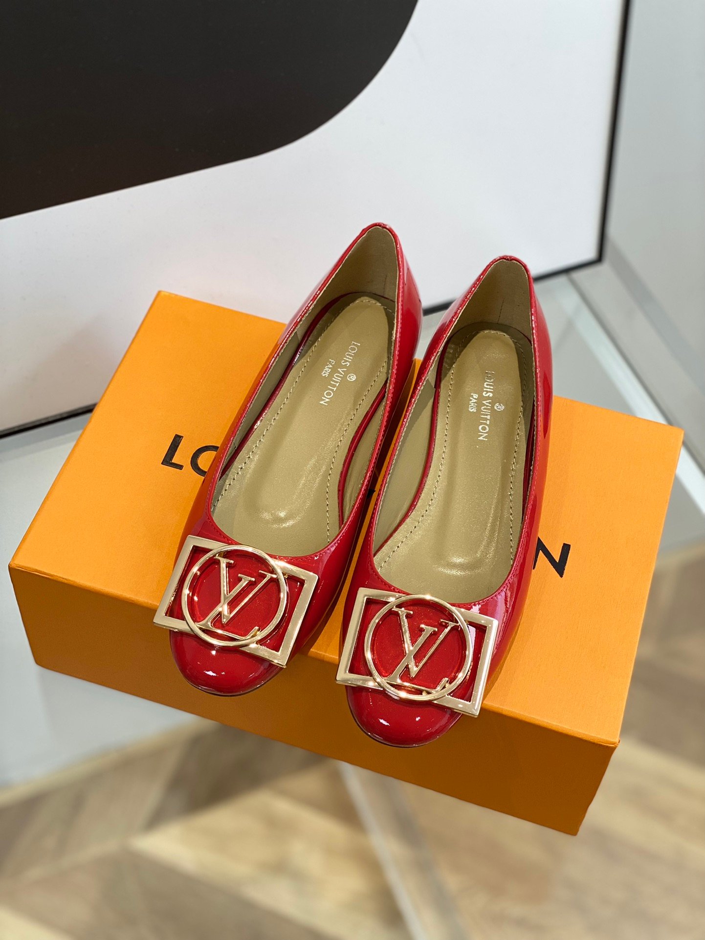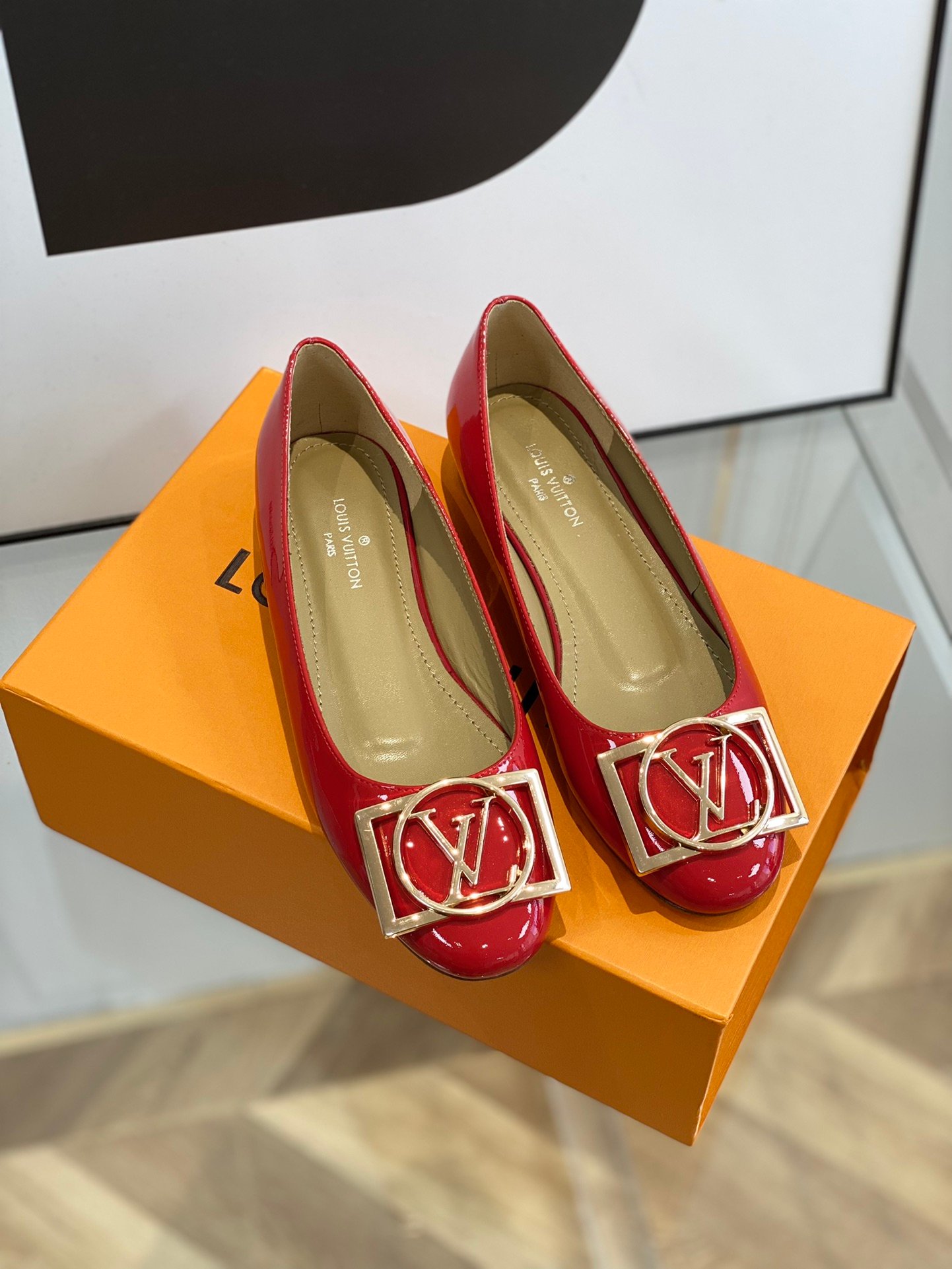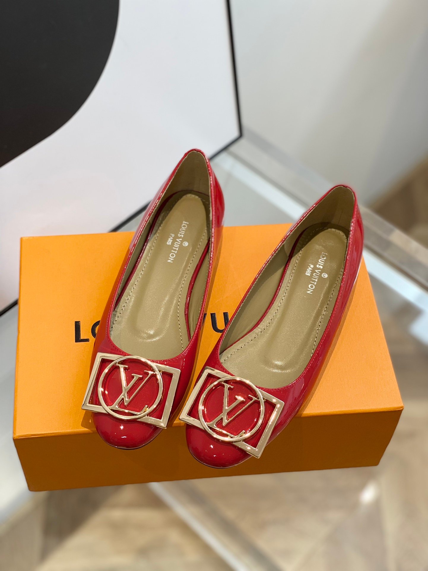 Upper cow patent leather, lining sheepskin, leather outsole