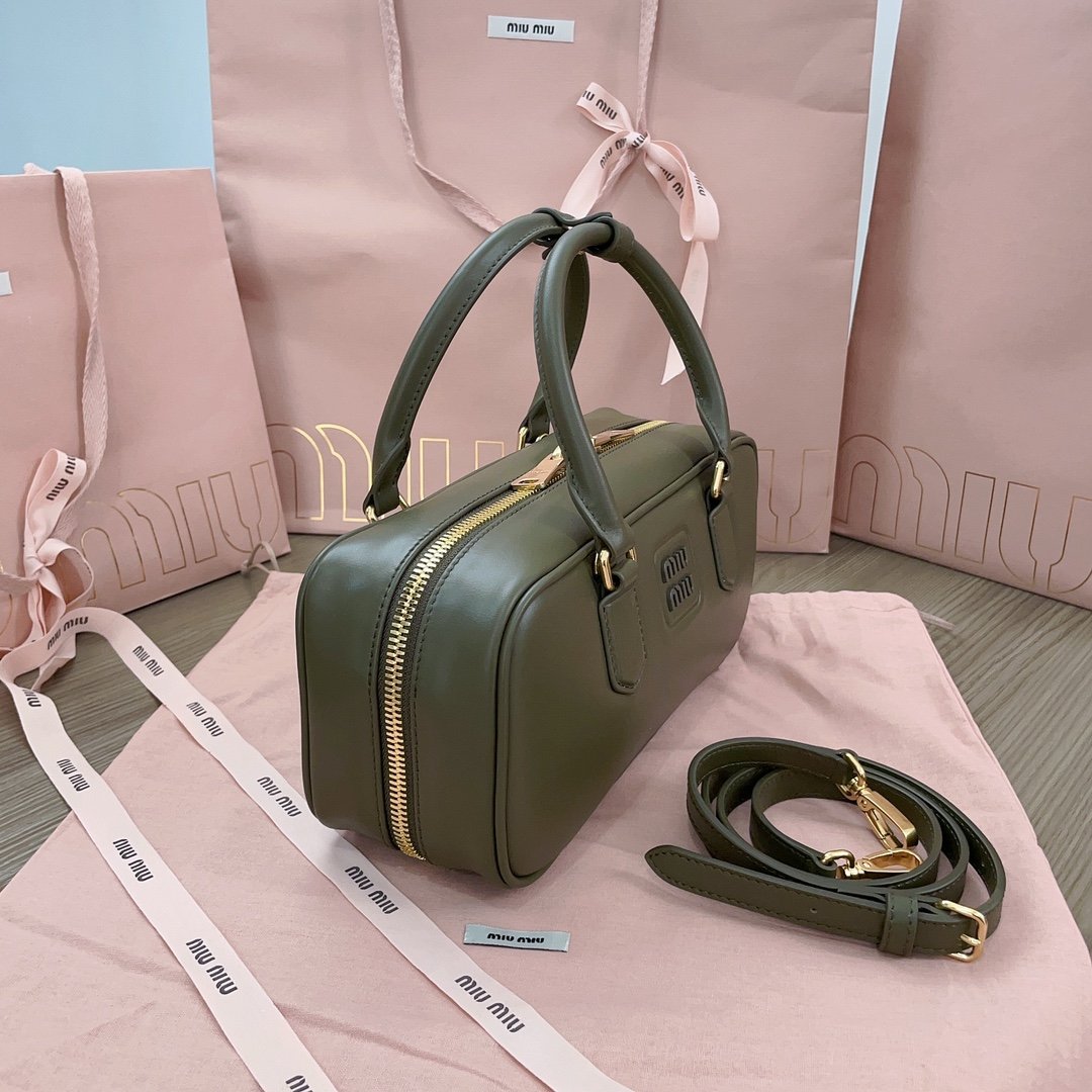 MiuMiu new bowling bag, made of top imported lambskin, smooth and delicate soft leather, cotton satin lining, this bag is cool, framing the exquisite multi-functional design, a blend of men’s and women’s elements, casual lazy