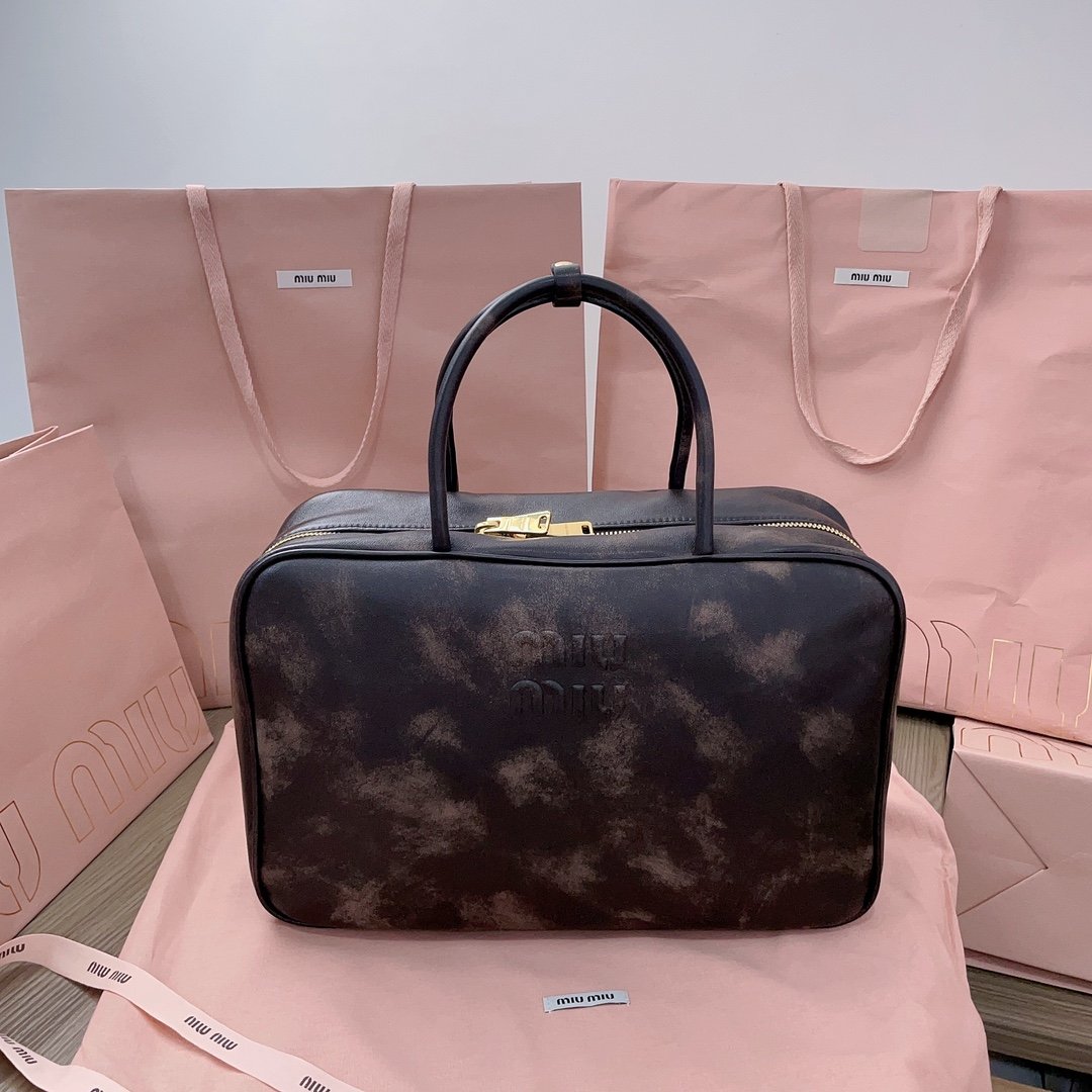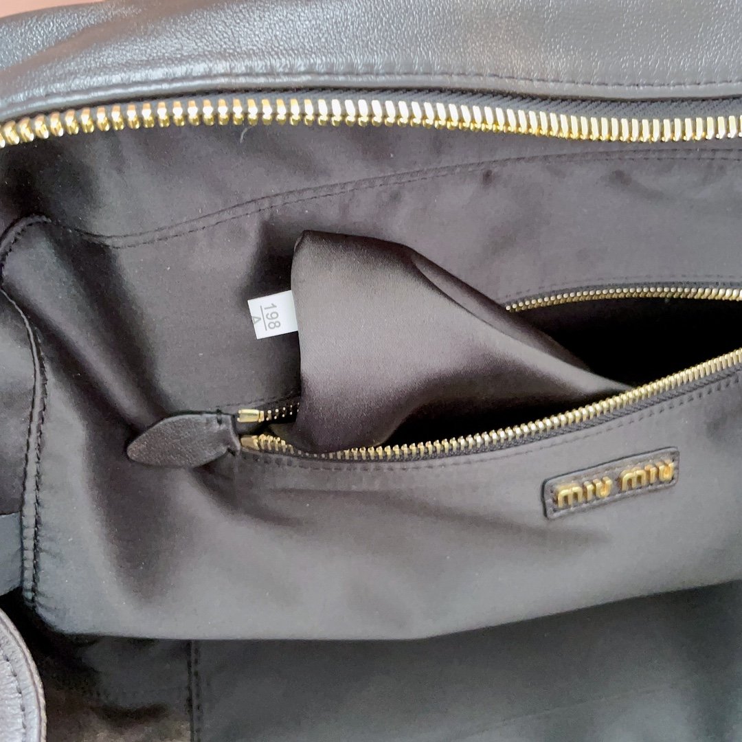 MiuMiu new bowling bag, made of top imported lambskin, smooth and delicate soft leather, cotton satin lining, this bag is cool, framing the exquisite multi-functional design, a blend of men’s and women’s elements, casual lazy